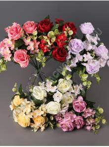Букет пионовидных роз с гортензией 9гр 44см (бел кр гол борд сир роз)
