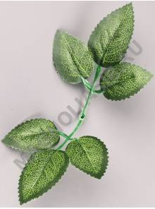 Лист розы шёлк 6 листьев 25см (средн отверстие на толстый стебель)